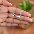 This beautiful necklace features a cursive name design on a 16"-18" adjustable cable chain. Personalize it with up to 10 characters, and choose from polished stainless steel or 18K yellow gold for a stylish and durable option.