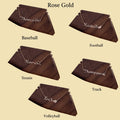 Proudly made in the USA, this necklace is crafted with high-quality 316 stainless steel and features a choice of 9 different sports charms: Basketball, Baseball, Soccer, Tennis, Golf, Football, Volleyball, Track, or Cheer. You can choose from Gold, Rose Gold, or Silver finishes to match her style. The 17-inch adjustable chain features a 3-inch extension for a customizable fit (total length = Chain + Charm). Each necklace comes beautifully packaged in a sleek black jewelry box, making it ready for gifting.